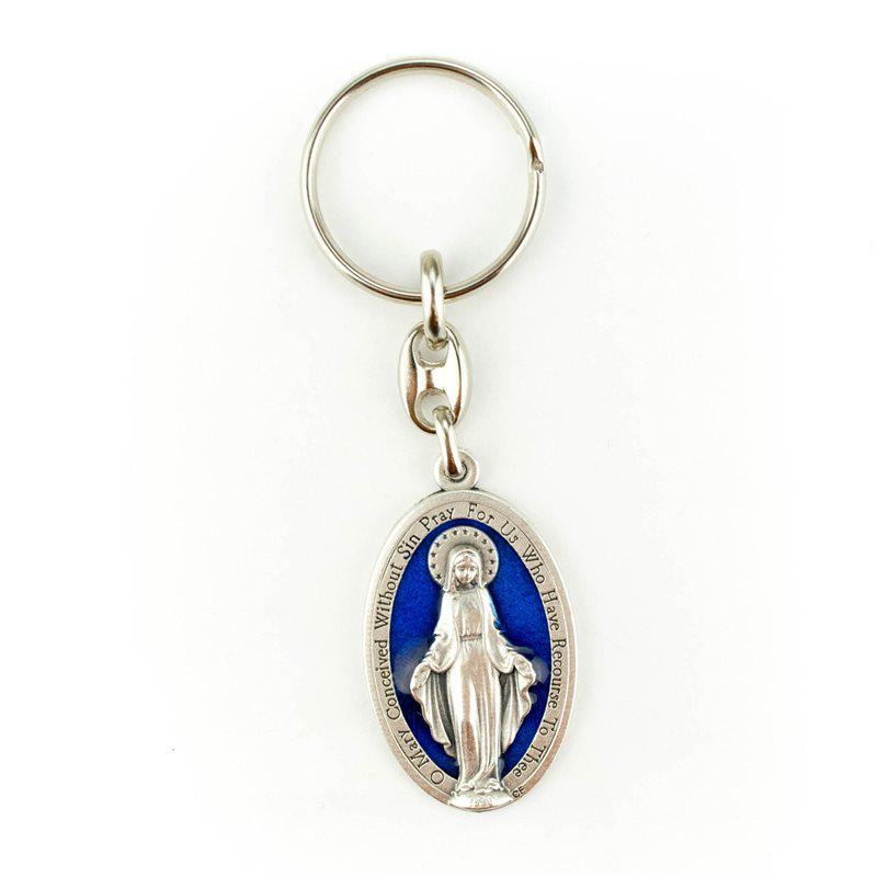 Blue Enamel Miraculous Medal Key Chain measures 1.5″. Made in Italy.