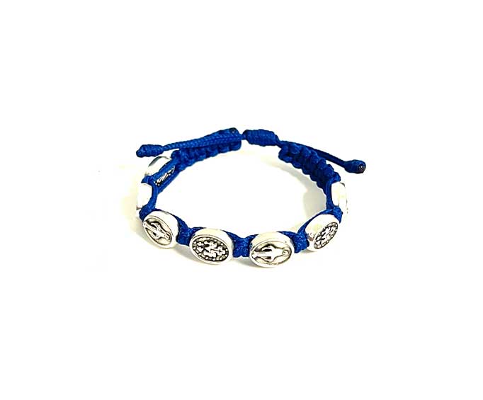 A sturdy Dark Blue color cord holds 7 Miraculous Medals in place and is adjustable.
