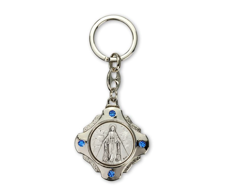 You won’t lose your keys with this eye-catching Miraculous Medal keychain! It has a sturdy silver finish and 4 blue stones.