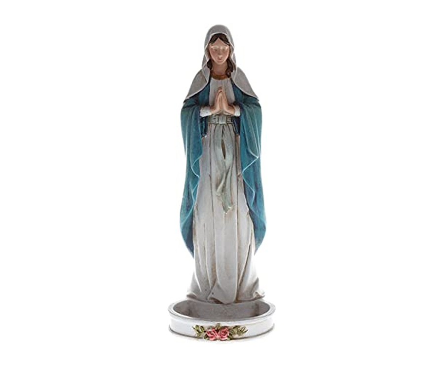 Our Lady of Grace Rosary Holder is made of Resin and is beautifully hand painted. The Madonna Rosary Holder is a lovely Catholic statue of Our Lady, that keeps your rosary handy at all times. Makes a wonderful gift for a Catholic and perfect for the dresser or your personal prayer table.