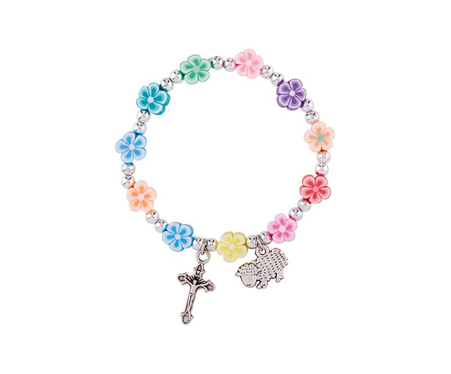 A special reminder of her special day. This adorable First Reconciliation Bracelet features Semi Precious Stones, Colorful Flowers, 1 Lamb and 1 Crucifix. Includes Act of Contrition prayer on back of packaging. Fits most wrists.