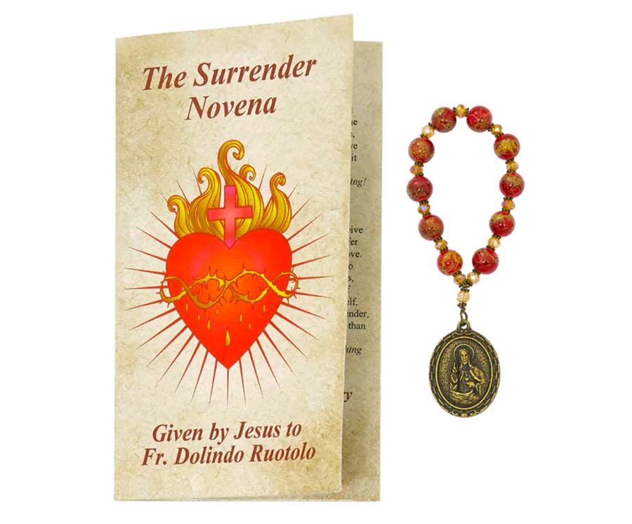 Antique gold-red Marbeline beads with booklet on How to Pray the Surrender Novena.